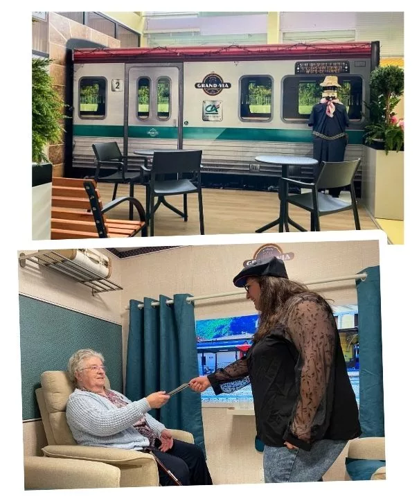 Une réplique de wagon de train pour faire voyager les résidents atteints de la maladie d'Alzheimer et réduire les troubles liés à cette pathologie.