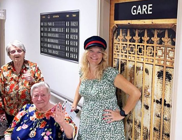 Laurence, coordinatrice d’activités dans une maison de retraite, et Frédérique, psychologue, font tout pour plonger les résidents dans l’ambiance.